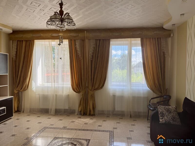 В доме кухня-гостиная, три спальни, спортзал,гардеробная, два санузла, прихожая, котельная. В дом заведены: электричество; вода - скважина (система водоподготовки), канализация - септик; отопление - газовый котел ( + электрокотел резервный).